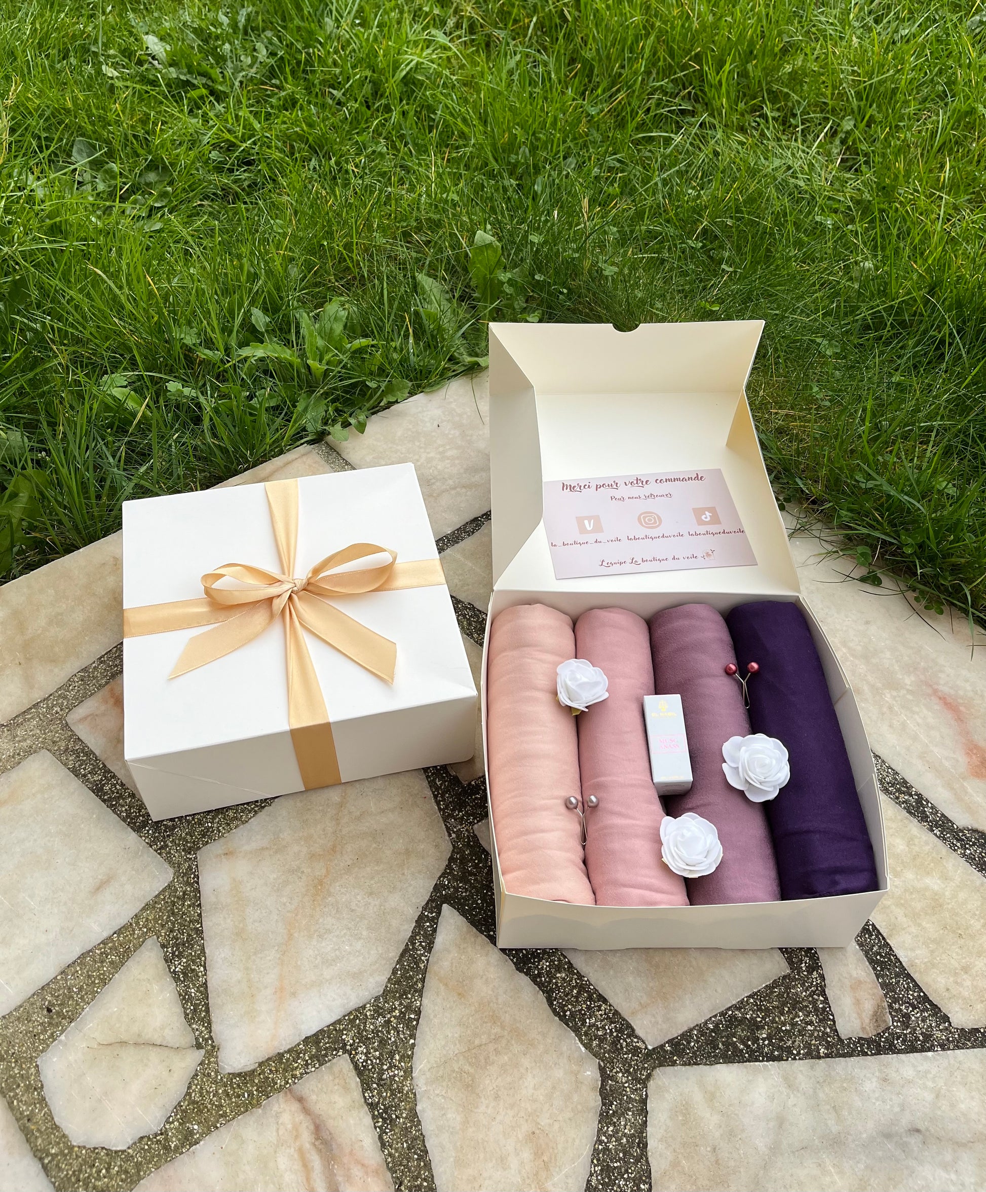 Découvrez notre collection de coffrets de voiles personnalisables, confectionnés avec amour à partir de mousseline et de jersey. À la Boutique du Voile, nous croyons que chaque femme mérite de se sentir unique et élégante, c'est pourquoi nous vous offrons la possibilité de créer le coffret de voile parfait, adapté à votre style personnel.